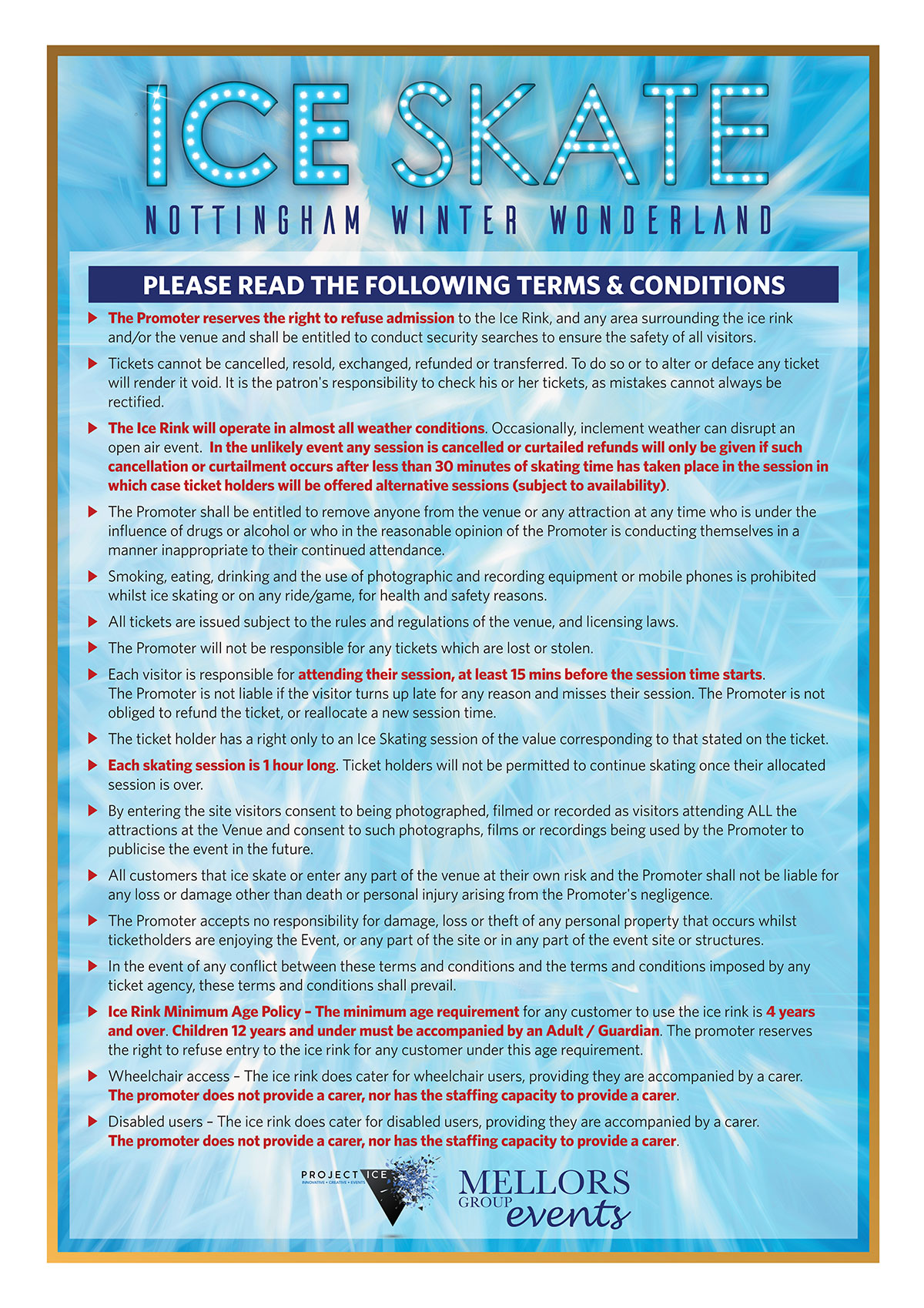 Ice Rink Terms & Conditions